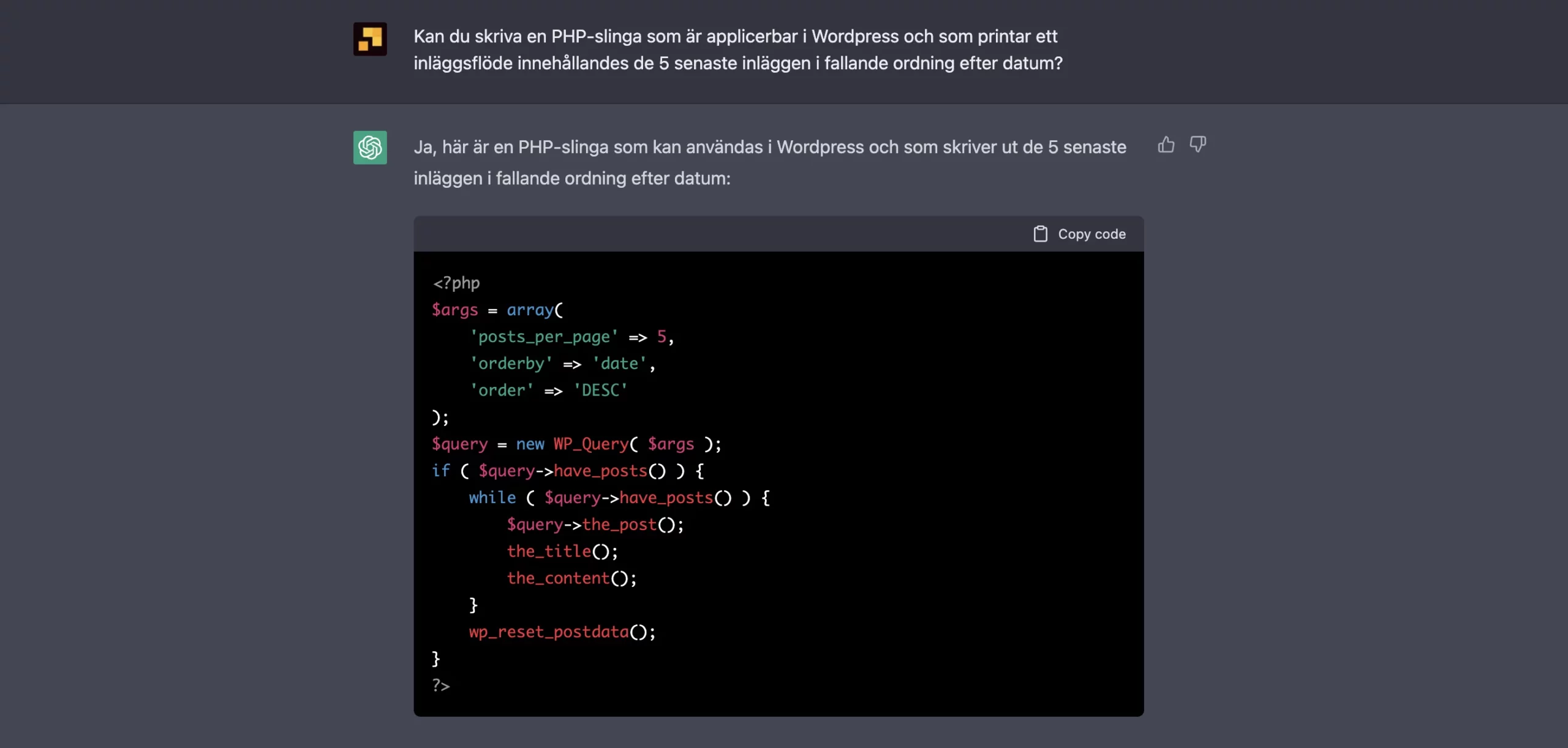 Här hjälper boten oss att hitta rubriker som vi kan använda i rubriker när vi skapar innehåll för våra sidor där vi pratar om logistik. Observera! ChatGPT används bäst som ett guidande redskap och ska enligt mig inte ses som ett klipp och klistra verktyg.
